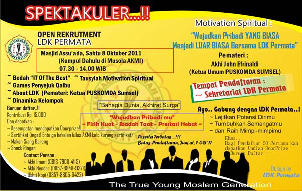 SPEKTAKULER 2011… Bagi Kamu Mahasiswa-Mahasiswi AMIK AKMI Baturaja, kembali LDK Permata AMIK AKMI Baturaja mengadakan Open Rekrutmen untuk menjadi Anggota LDK Permata.