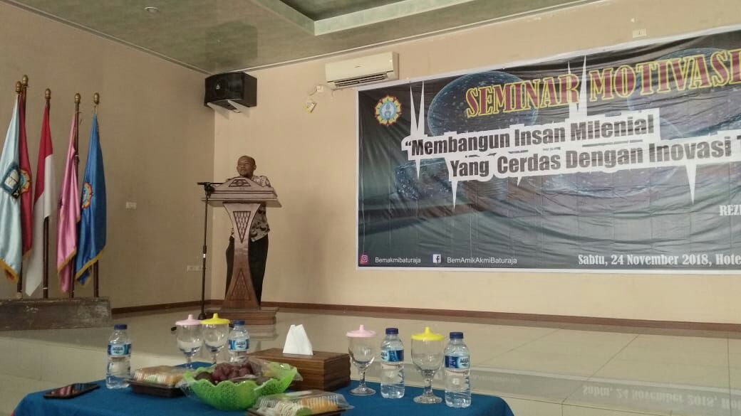Seminar Motivasi yang diadakan oleh Badan Eksekutif Mahasiswa (BEM) AMIK AKMI Baturaja disambut positif oleh mahasiswa AKMI Baturaja yang mengikuti seminar. Seminar Motivasi ini diselenggarakan di Aula Hotel Grand Kemuning Baturaja pada tanggal 24 November 2018.